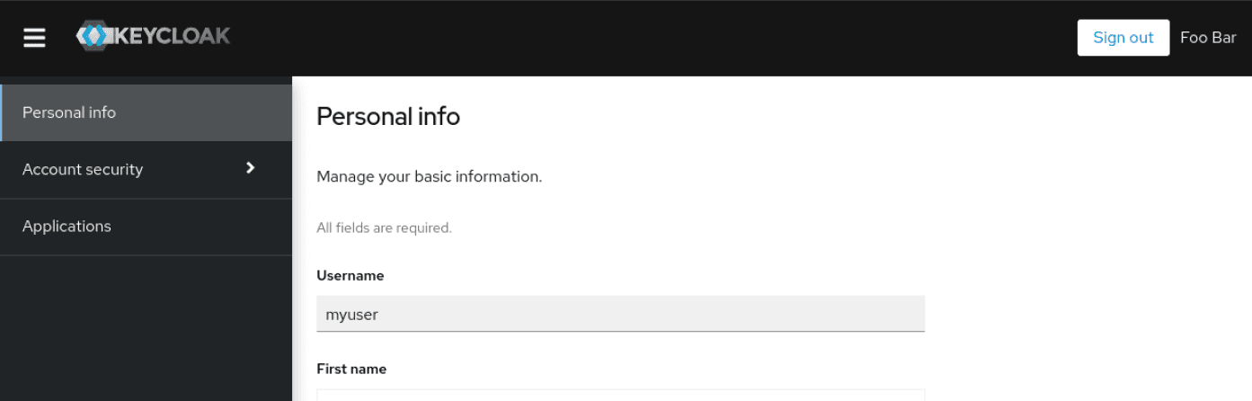 Keycloak also offers an account management console. You can use this portal to update your profile, change passwords and set up two-factor authentication. You can also get an overview of all open sessions and keep an eye on your logins.